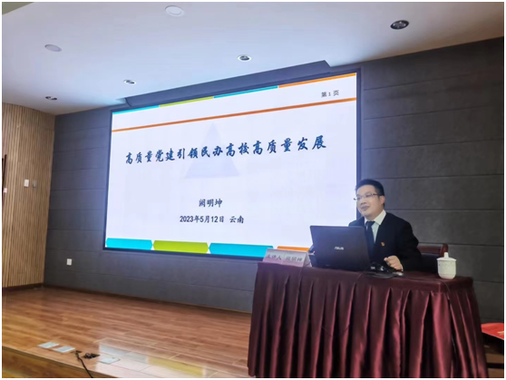 此次培训班为期5天。5月11日上午8:30—11:30 ,浙江大学国家高端智库教育学院分中心执行主任、无锡太湖学院副校长阙明坤教授应邀为培训班学员们作《高质量党建引领民办高校高质量发展》的专题讲座。在3个小时的讲座中,阙明坤从民办高校党建的发展历程、民办教育新法新政的历史变迁、民办高校党建质量提升等方面,为云南民办高校董(理)事长、党委书记、校长和组织部长带来专题报告,受到一致好评。